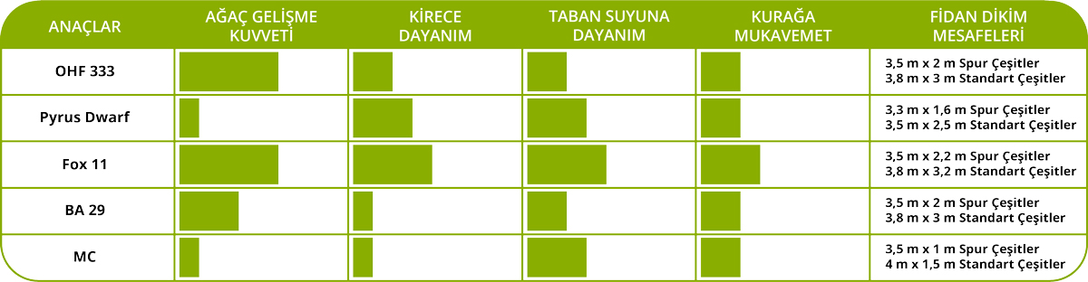 - OHF 333 gibi ateş yanıklığına hassas olmasına karşın oluşan zarar ayva kökenli anaçlardan daha azdır.